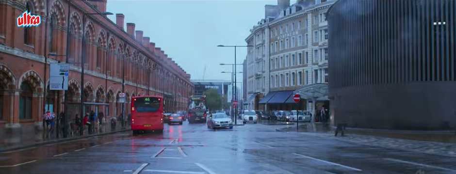 A second or two later and the frontage to King’s Cross station, St. Pancras’ lowly neighbour, just creeps into view on the right