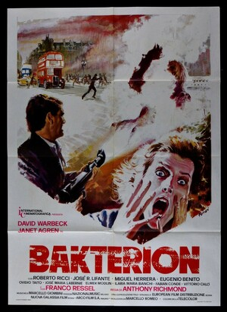 This Italian-Spanish collaboration is a horrifically bad film, which during the period of very bad and very cheap horror movies is no mean feat! Despite some scenes filmed in Spain, the majority of shooting took place in London and the surrounding suburbs bordering Kent. There are a couple of brief, and apparently meaningless scenes filmed at Swanley station, with one featuring a run through at speed of a 6-car EMU formation made up of three 2-car HAPs. The film was released officially as Bakterion, but was known largely by its English language title of Panic (director Tonino Ricci is credited in the English language versions as Anthony Richmond). It was also released in Australia as Zombi 4: Bakterion, in Germany as Nightmare Killing, and as Monster of Blood in the US, where it did not receive its television premiere until 1984.